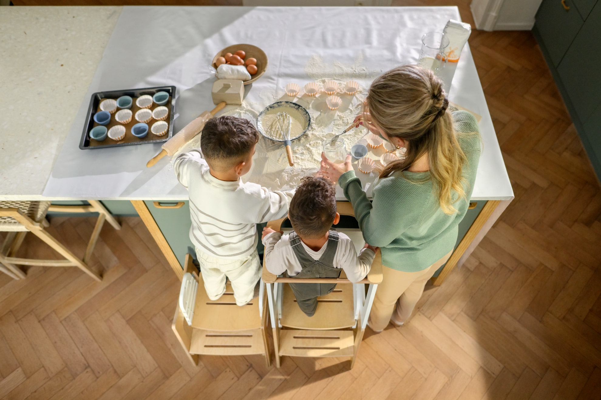 La cocina es el entorno perfecto para que tu hijo explore su curiosidad con una torre de aprendizaje. Salva de forma segura la distancia que lo separa de la encimera, permitiéndole participar en tareas sencillas de preparación de alimentos junto a ti.