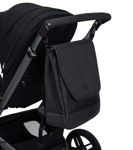 Transporta tus imprescindibles cómodamente gracias a las correas acolchadas con laterales de rejilla, los ganchos para cochecito integrados y la pieza que permite unirla al mango de la maleta.