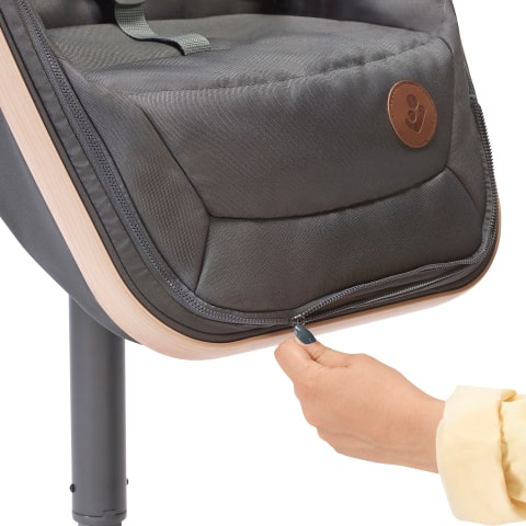 Cuando tu hijo pueda sentarse solo, la Maxi-Cosi Alba puede utilizarse como trona. Se puede combinar con el kit de comida Alba, que es adecuado desde los 6 meses hasta los 3 años aproximadamente (15 kg). La bandeja del kit de comidas (se vende por separado) se engancha de manera sencilla en el marco y la funda es repelente al agua y se puede lavar a máquina, lo que facilita su limpieza.