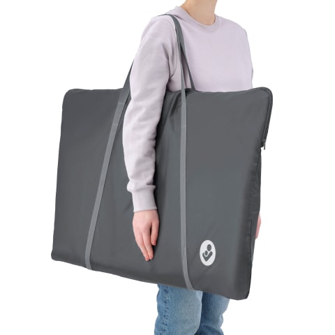 Tori es un colecho ultracompacto y liviano, por lo que es fácil llevarlo contigo cuando viajas lejos de casa. Simplemente dóblalo y llévalo en la práctica bolsa de viaje.