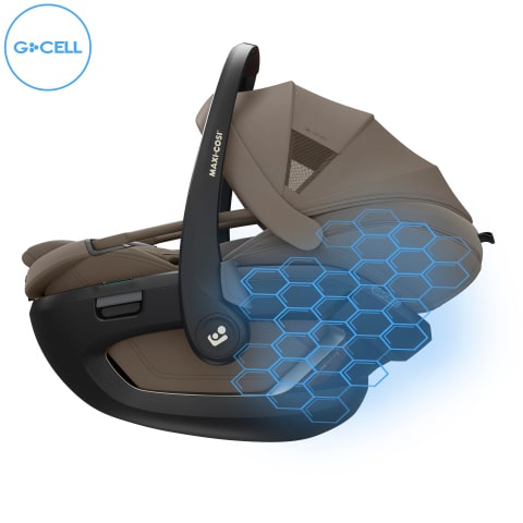 - La estructura G-CELL integrada en la silla de coche distribuye el impacto y reduce el riesgo de lesión en caso de colisión lateral.