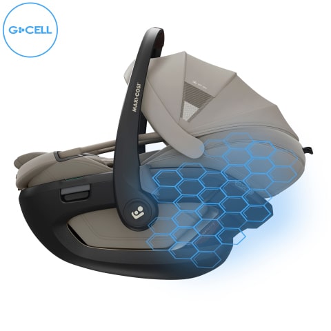 - La estructura G-CELL integrada en la silla de coche distribuye el impacto y reduce el riesgo de lesión en caso de colisión lateral.