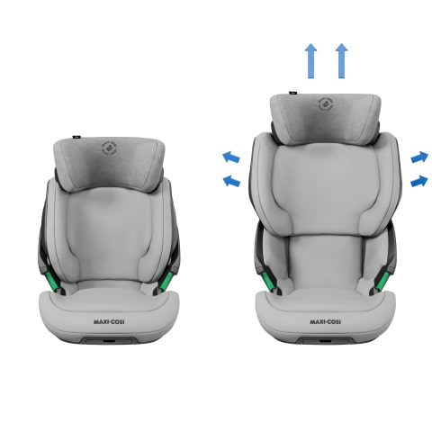 Kore i-Size está diseñada para niños que midan entre 100 y 150 cm; su altura y anchura pueden ampliarse con solo ajustar el reposacabezas. Así, tu hijo disfrutará de más espacio y del máximo confort.