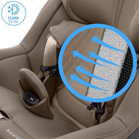 - Tu pequeño estará cómodo durante todo el año con los paneles de ventilación ClimaFlow, la espuma transpirable y los tejidos de malla de la silla de coche que mejoran la circulación de aire.