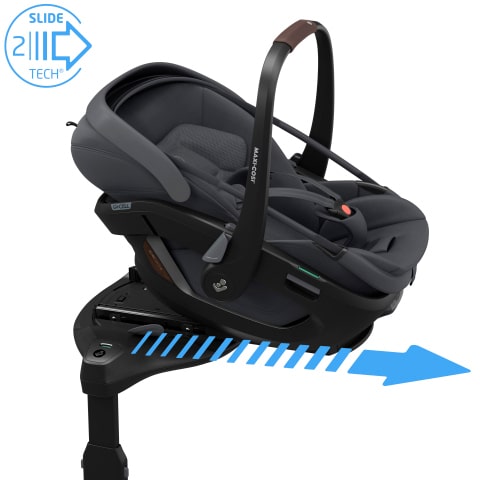 Al combinarse con la FamilyFix Slide Pro, el sistema SLIDETECH®2, que se desliza hacia fuera hasta 27 cm, te permite acercarte la silla de coche para meter y sacar al pequeño del coche de forma sencilla.