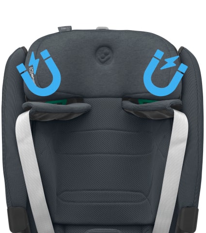 - Gracias al arnés de seguridad de 5 puntos de fácil colocación con su hebilla magnética, meter y sacar a tu hijo del coche es un juego de niños más que una tarea pesada.