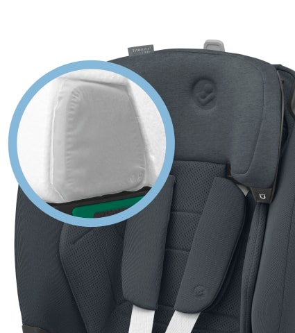 - Titan Pro i-Size cuenta con cojines de seguridad patentados AirProtect® en el reposacabezas, que reducen el riesgo de lesiones en la cabeza hasta en un 20% y mejoran la comodidad de tu hijo.
